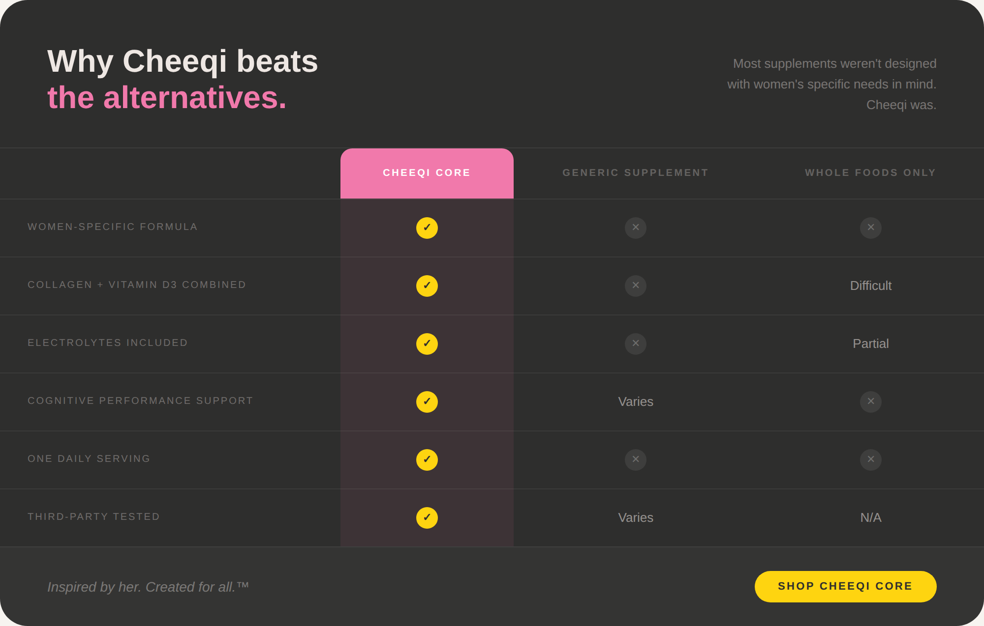Cheeqi Core was created for women who know something's off — even when every test comes back "normal." The fatigue that doesn't lift after sleep. The brain fog that clouds your sharpest hours. The feeling that your body is working against you.