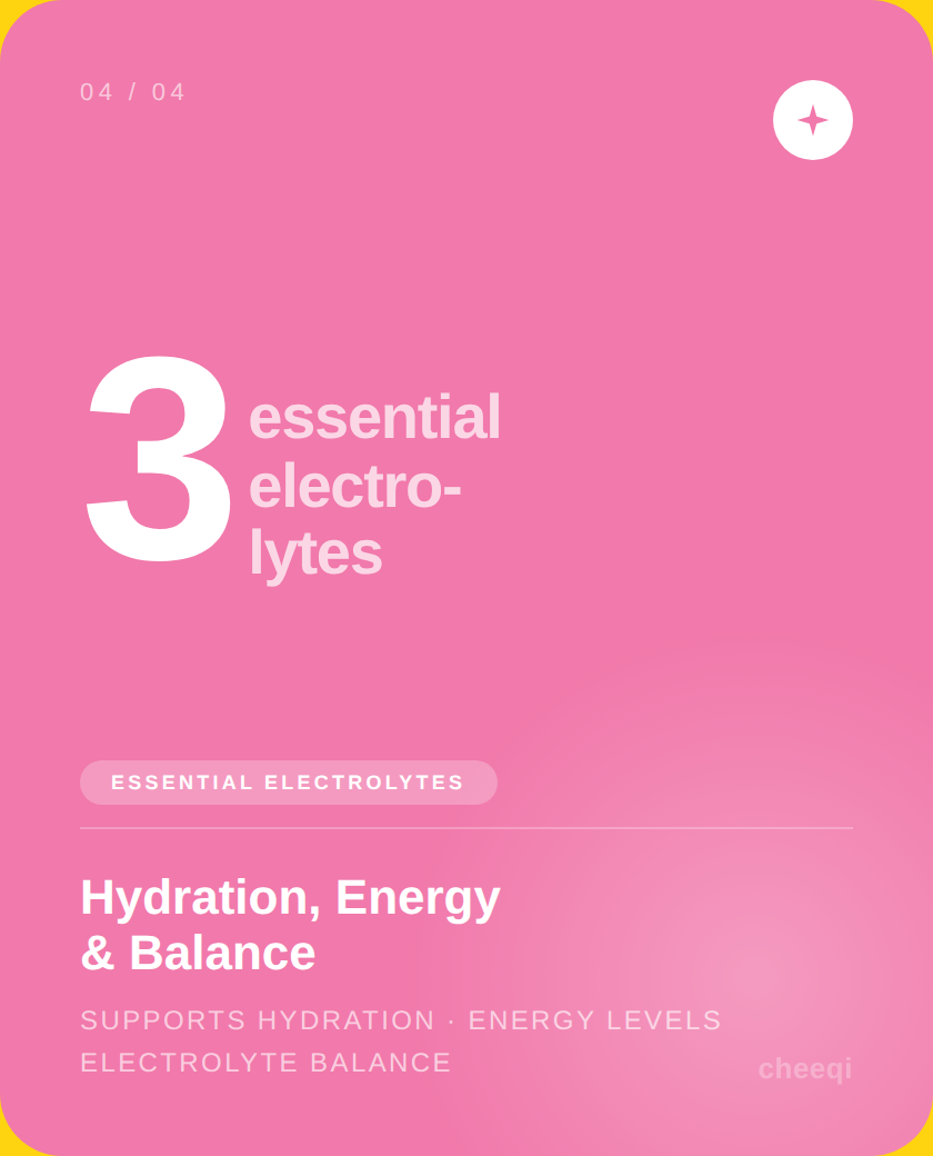 Three essential electrolytes work together to replenish what most women chronically lose — supporting cellular energy, muscle recovery and that clear-headed, light feeling.